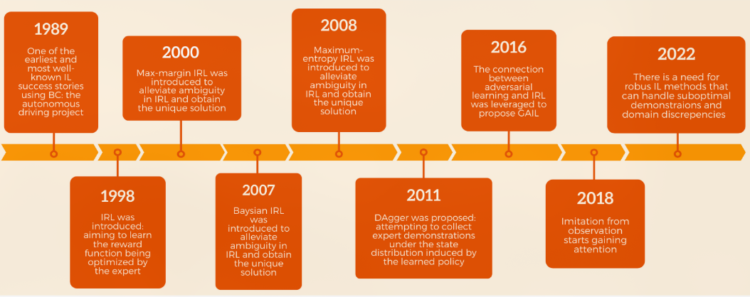IL是区别于传统手动编程来赋予机器人自主能力的方法。 IL 允许机器通过演示(人类演示专家行为)来学习所需的行为,从而消除了对显式编程或特定于任务的奖励函数的需要。 IL主要有两个类别:
