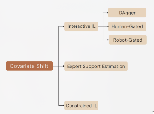 The covariate shift problem: 测试期间观察到的状态分布可能与训练期间观察到的状态分布有所不同,使得代理在遇到未见过的状态时容易出错,而对于如何进行操作缺乏明确的指导。BC监督方法的问题是,当智能体漂移并遇到分布外状态时,它不知道如何返回到演示的状态。